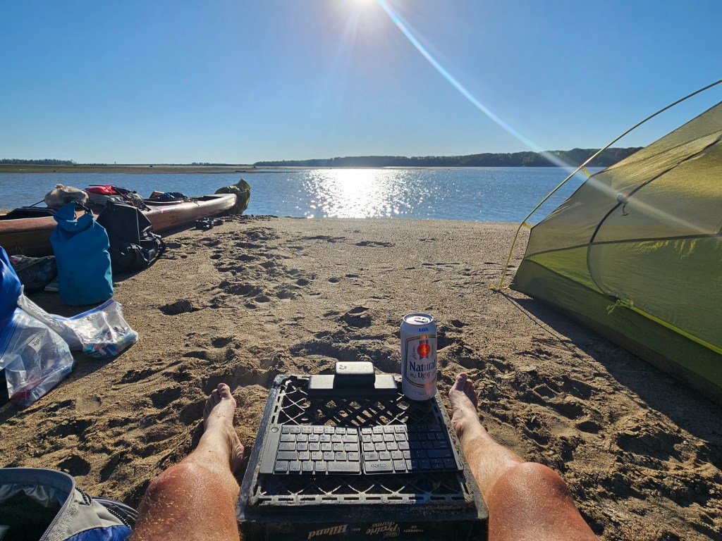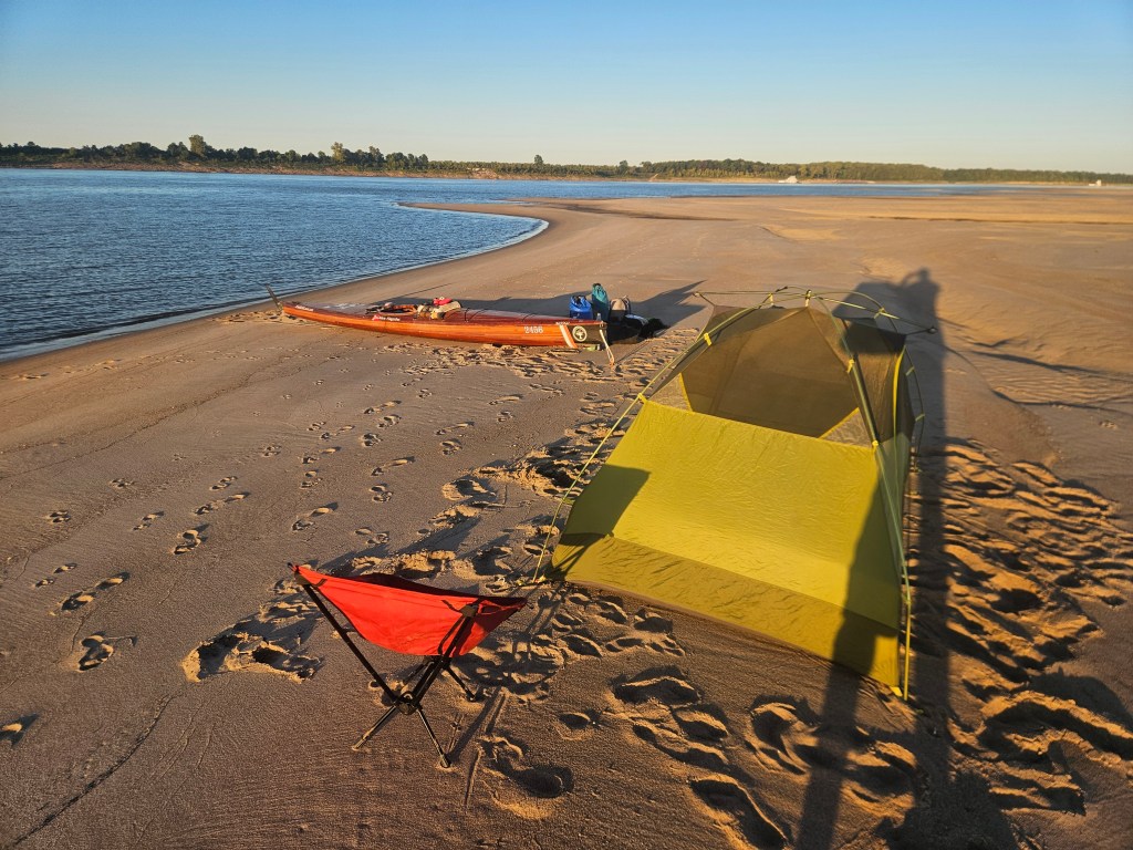 Easily encountered the most expansive sandbars I’ve seen in my life on this trip. And it was incredible to have miles of open sand all to myself nearly every night – open air, pristine night sky, few bugs and pests, wildlife sounds and just the hum of barges passing throughout the night