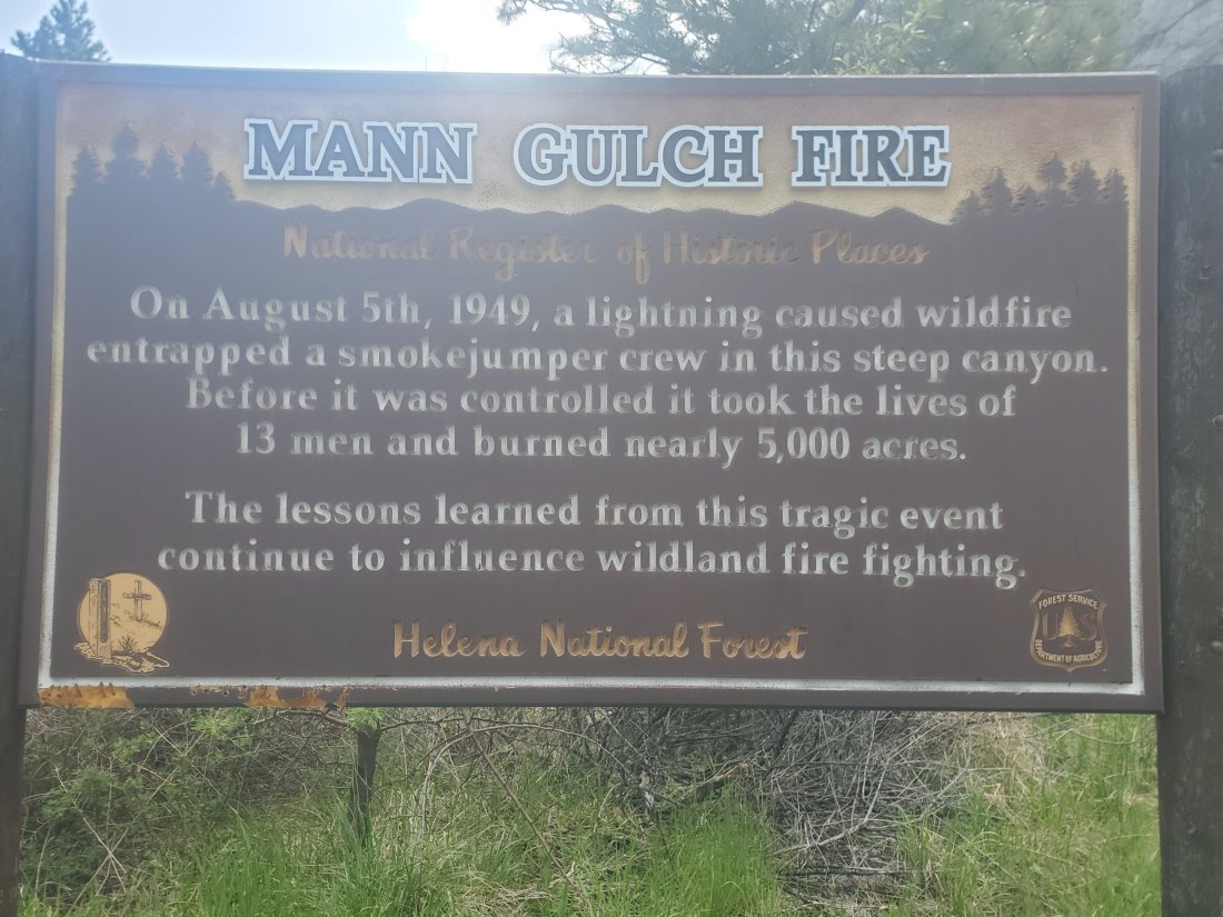 In the morning, we paddled about 3 miles down to Mann Gulch: another item I’d been looking forward to during the planning for my trip. In 1949, smokejumpers fighting a wildfire in Mann Gulch were overcome and raced to the top of a gulch to try to reach the ridge to escape the fire. 13 young men died in the fire, 11 not making out out of the gulch. Two more crested the ridge only to die from their injuries.