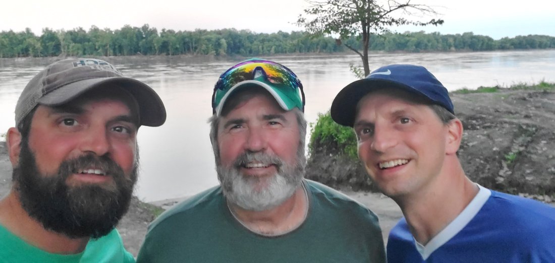I kept paddling from Jeff City, running into two canoeists camped on the river just below the Moreau River. Then in another internet-enabled interaction, I met a St. Louis hashing friend down by the river where he was working at the nearby National Guard armory.