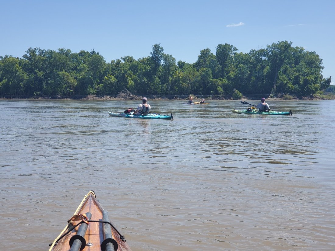 I’m currently up early after working late on my kayak with my friend Shane at Timber Longboard Co. at his amazing new workshop/world headquarters – Paddle Stop New Haven. There were no major issues with the boat, just a lot of sun damage that needed to be sanded out and re-touched with varnish. Shane wants my rig to look good for the masses as I paddle up to the Arch! In terms of blog posts continuity, for now I am skipping my experience from Omaha to Kansas City. I’ll circle back on that after the excitement of the next few days dies down. Today I will paddle with one of my previous MR340 partners from New Haven to Klondike Park with a stop in Washington, MO. Tomorrow I will paddle into St. Charles where the Festival of the Little Hills is happening, then continue on to Sioux Passage Park, where I’ll spend my final night camping with a group of friends. Then Saturday, some hearty souls will paddle the final 20ish miles or so with me to the Arch.