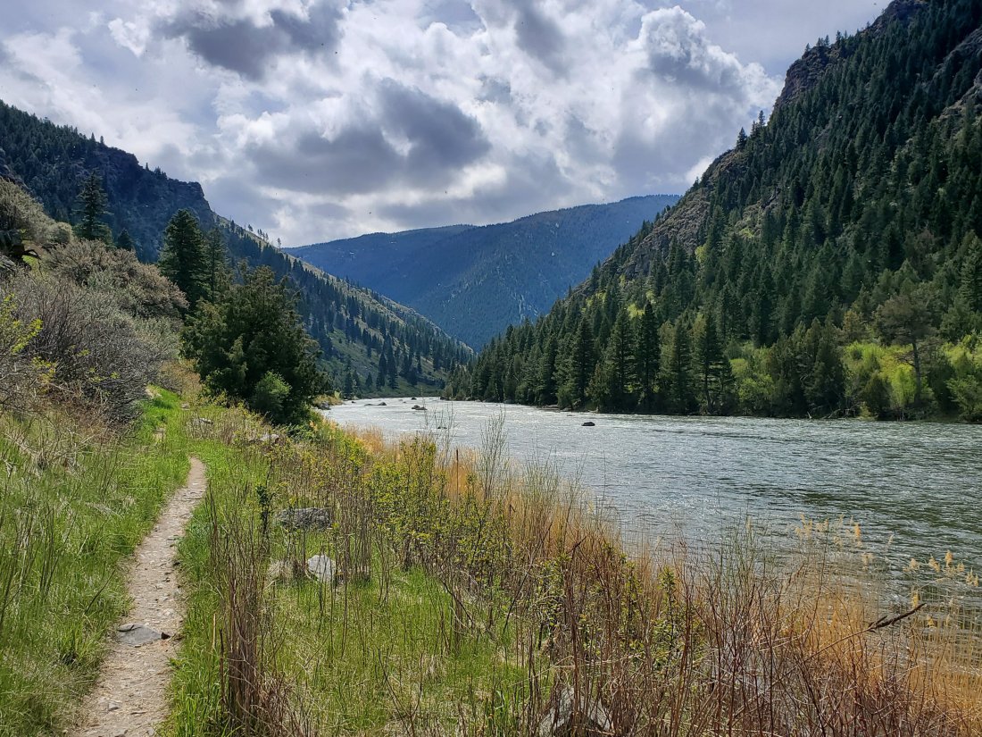 Waking up at Varney Bridge, I only had about 10 miles to paddle to arrive at Ennis, MT, probably the biggest town along the Madison. It was pretty uneventful paddling, kind of a grey day and nothing too treacherous, just a few braided channels to navigate. The river is relatively high during the spring right now, so I luckily don’t have to worry too much about running aground in the shallows. And the river moves at a pretty good clip, so I don’t really have to do much paddling. Arriving at the boat ramp in Ennis, I hoofed it over the bridge and into town and stopped in the first fly fish shop/outfitter/guide service I came to. I had a decision to make. After a few more miles, the Madison dumps into Ennis Lake, then enters Bear Trap Canyon. Researching the Madison, I knew I wasn’t going to paddle through Bear Trap. There is Class III thru Class V whitewater. I thought I’d be able to portage around those rapids on a hiking trail. After my first rough day of portaging on pavement, not to even consider off-road portaging, I changed my mind. I was going to get a ride around the Bear Trap.