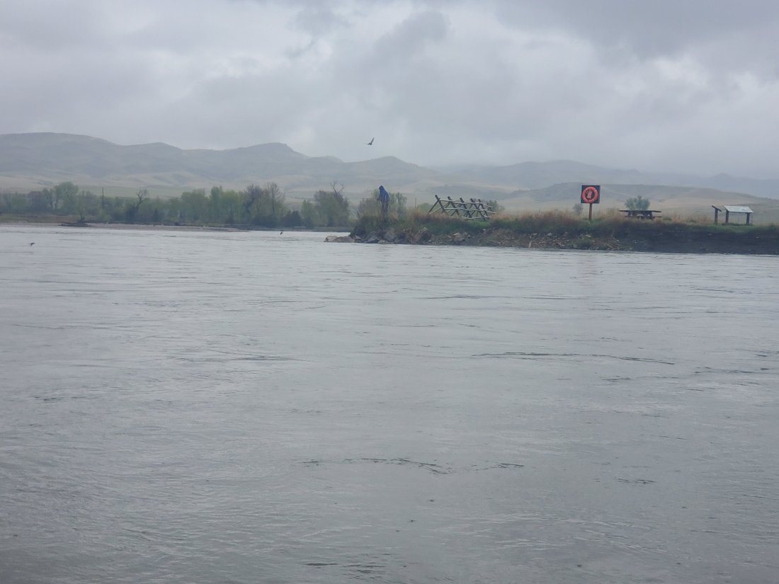 Even though it was 45゚and raining, I think the last 4 miles of the Madison might have been the most beautiful. There are long, meandering curves, the water is generally calm and I think I saw more wildlife than I had on the entire Madison before. I saw pelicans, cranes, countless ducks and geese, other waterfowl I couldn’t identify; I saw 2 deer swim/run across the river right in front of me. I came around a curve to see a moose or elk sitting on the bank and staring at me. Plus, hundreds of small birds flying an inch or 2 above the water picking off flies for dinner. It was another spiritual experience not just for the natural aspect, but for the historical significance as well. Tomorrow morning, I will climb a rock that Lewis and Clark climbed as they reached the end of the Missouri River, and saw 3 rivers coming together. They also saw the forbidding rocky mountains in the distance. They knew their opportunity for making it over those mountains was short as the Winter was closing in. I on the other hand, huddled in my tent shivering, can’t wait for Winter to be over.